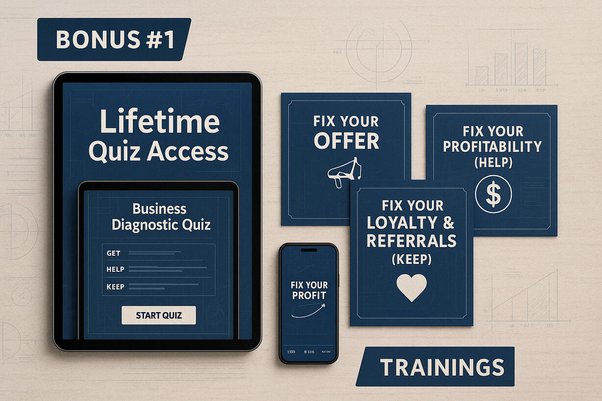 Take the quiz as many times as you want as your business grows and unlock all three breakthrough trainings overtime.